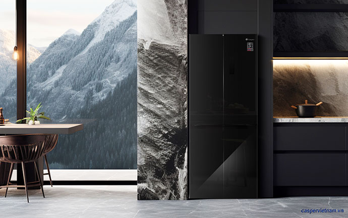 Mặt kính đen cao cấp phản chiếu ánh sáng tinh tế, tạo chiều sâu và phong cách sang trọng cho không gian bếp – biến tủ lạnh Casper nhiều cửa 430L ProFresh RM-D430GBS thành điểm nhấn nội thất đầy tinh giản và đẳng cấp.