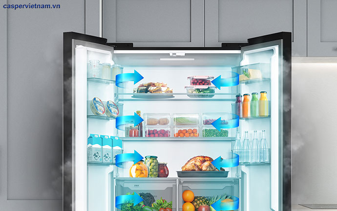 Khí lạnh không thổi trực tiếp vào thực phẩm mà lưu chuyển tuần hoàn, đảm bảo ướp lạnh hiệu quả ở mọi vị trí, giảm dao động nhiệt.