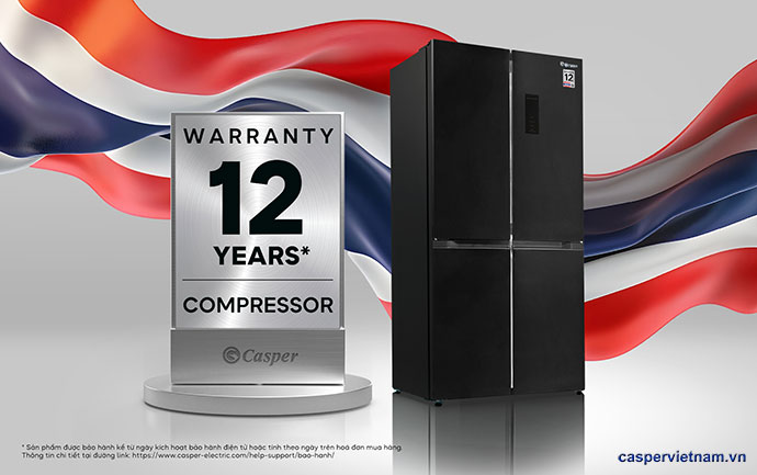 Tủ lạnh Casper nhiều cửa 432L EcoFresh RM-E432PBS bền bỉ hàng chục năm với chất lượng chuẩn từ thương hiệu Thái Lan, hoàn toàn yên tâm với thời gian bảo hành 12 năm* vượt vòng đời của sản phẩm thông thường.